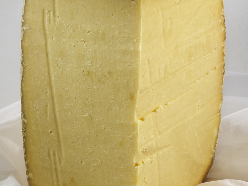 This large, dry-rind cheese is exclusively made with whole cow’s milk. Its paste is uncooked and has the specificity of being pressed twice. The curds are crushed between the two pressings and salted in the mass, giving this cheese a grainy, crumbly texture.