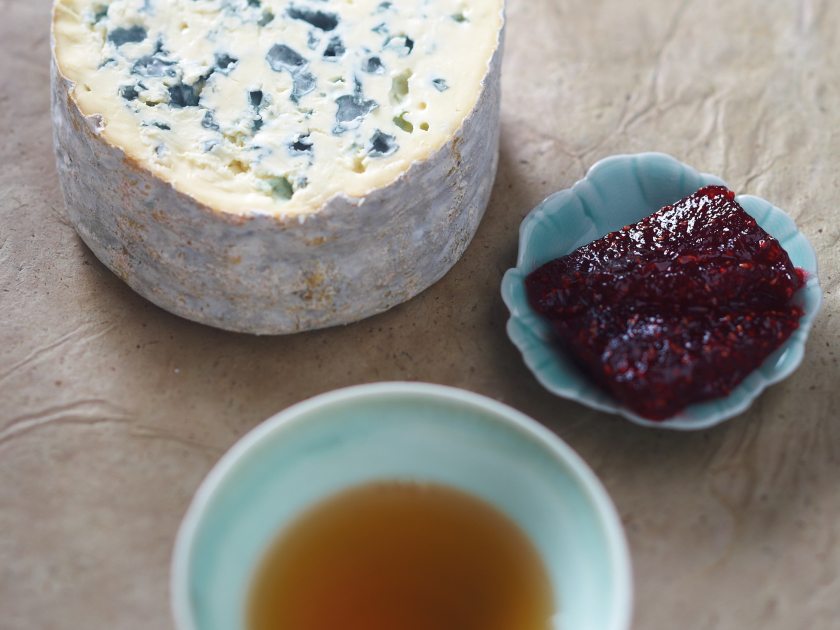 Thin, downy, stone-gray rind. Aerated, ivory white paste sprinkled with blue-gray spots that form in the holes; sometimes shows blue veins.