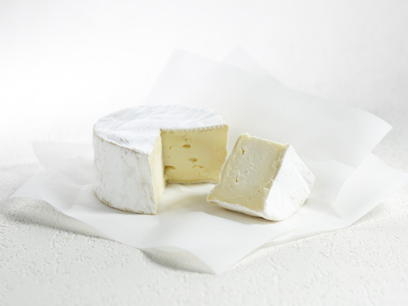 A double-cream cheese with a soft, pale yellow paste and a downy white bloomy rind.