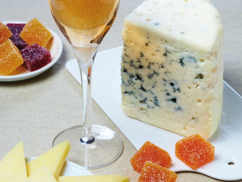 Salers owes the fatty nature of its texture to its milk content, and its aroma to the length of the maturation process. It has quite a high salt content and it goes well with the citrus fruit and spiced notes of the brut rosé. Note that the Champagne is resilient when faced with one of France’s most unusual and strong cheeses.